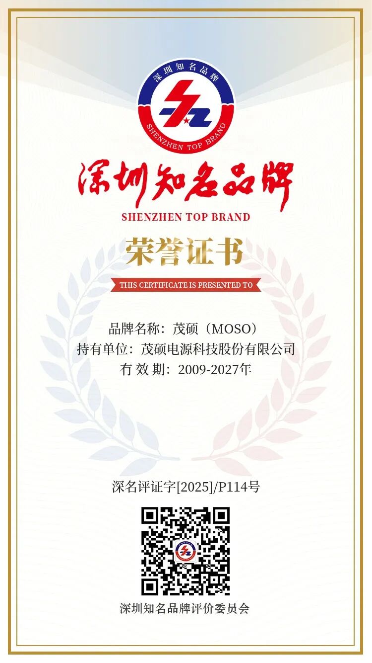 作为扎根深圳成长起来的行业领先企业,茂硕电源始终践行"品质为基、创新为魂"的发展理念,与深圳品牌共同成长。"茂硕(MOSO)"品牌自2009年起持续多年获评"深圳知名品牌",并于2014年、2017年连续两次斩获"广东省著名商标"荣誉,2017年成功认定为"中国驰名商标",品牌影响力与市场认可度持续领跑行业。此次入选白皮书典型案例,既是对企业深耕电源领域、赋能超级工程的肯定,更是对茂硕电源坚守长期主义、践行创新驱动发展战略的最佳印证。